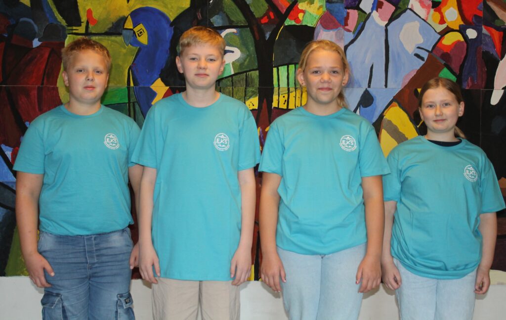 In diesem Schuljahr wurden über 70 Schülerinnen und Schüler in drei fünften Klassen an der EKS eingeschult. Nach der gelungenen Einschulungsfeier, die durch abwechslungsreiche Beiträge aus den Klassen 6a, 6b und 6c mitgestaltet wurde, wurden die Schülerinnen und Schüler von ihren Klassenlehrkräften in Empfang genommen. In den folgenden Tagen stand das Kennenlernen der neuen Mitschülerinnen und Mitschüler, Lehrkräfte und der Schule im Vordergrund. Dabei trugen sie mit Stolz ihre neuen Schul-T-Shirts, die durch Spenden der Firma Kohl Transporte aus Hüsby und dem Förderverein der EKS finanziert wurden. Hierfür möchten wir uns im Namen aller Schülerinnen und Schüler herzlich bedanken!