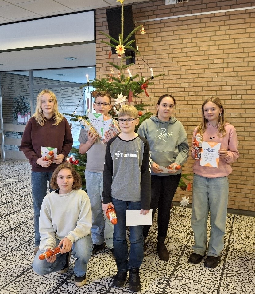 Spannung und Freude lagen in der Luft, als die Klassensiegerinnen und -sieger der 6. Klassen am 10. Dezember in der Pausenhalle der Erich Kästner-Schule aufeinandertrafen. Vor einem sehr motivierenden Publikum sowie einer hochkarätig besetzten Jury – darunter auch Leif und Ronja (7a und 7b), Schulsieger und -siegerin 2024 – präsentierten die sechs Finalistinnen und Finalisten eindrucksvolle Lesevorträge.